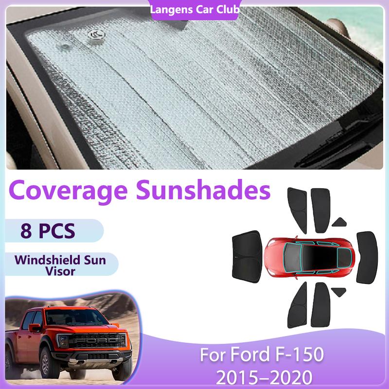 Full Car Sun Shade Parasol Coverage for Ford F-150 2015– Mat Visor Side Window Sunshade Cover Anti UV Pad Accessories.