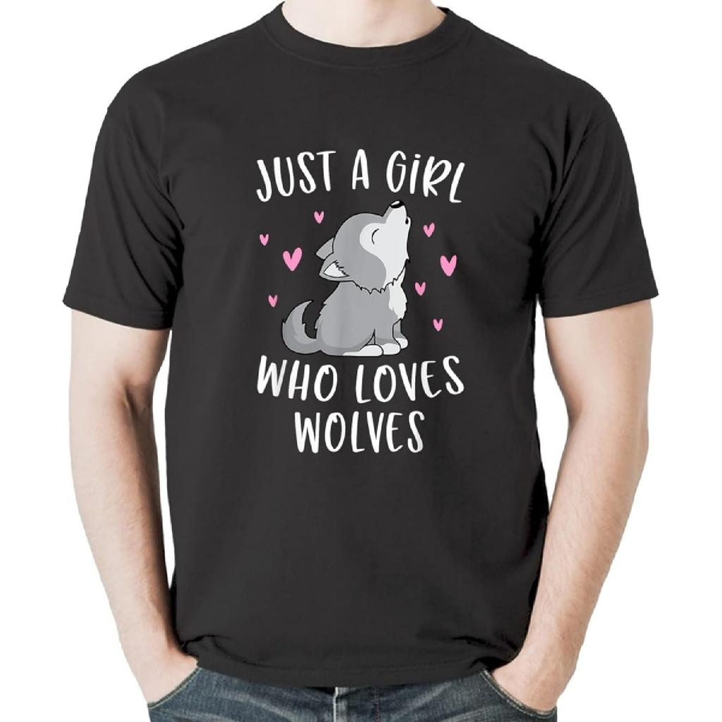 Cute Wolf Shirt for Girls Just A Girl Who Loves Wolves T-Shirt Sweatshirt Hoodie Tanktop for Men Women Kids Black