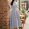 ZANZEA Women Casual Turn Down Collar Summer Short Sleeve Stripe Dress