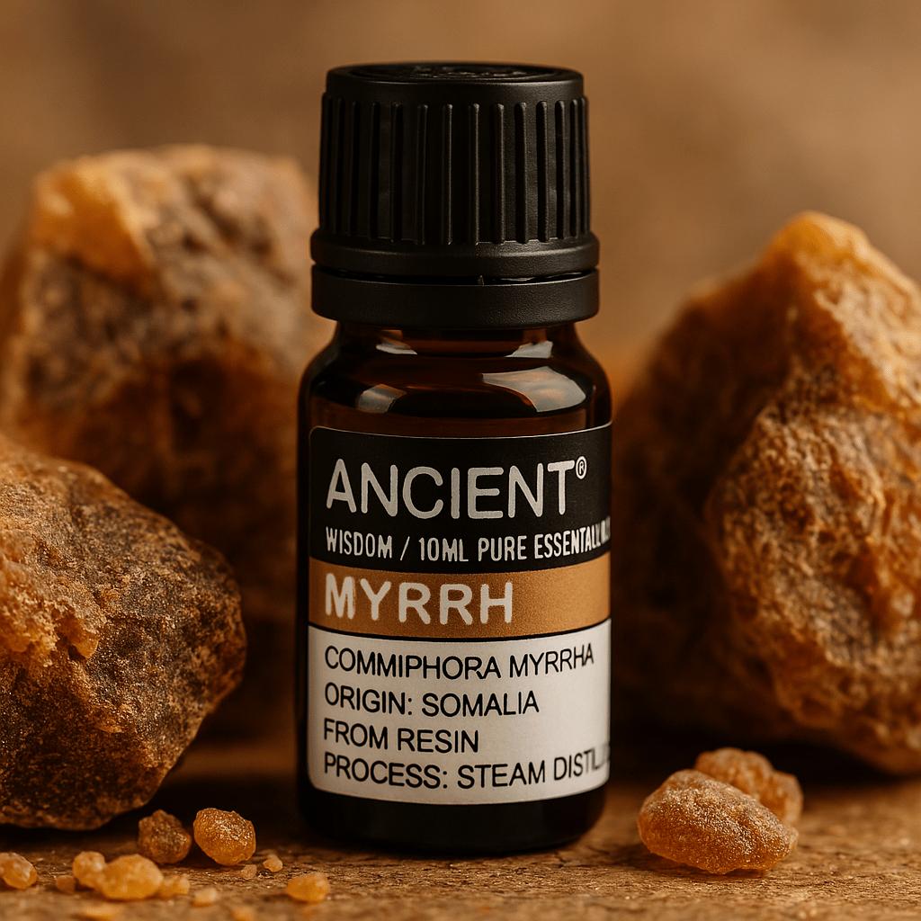 Steam-distilled from the sun-cured resin of Commiphora myrrha, our myrrh carries balsamic depth with hints of honeyed wood and a whisper of smoke. Sourced from Somalia, it reflects a heritage where myrrh has long been treasured in perfumery and ceremonial incense — a thoughtful reminder of presence and reverence in daily life.