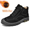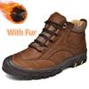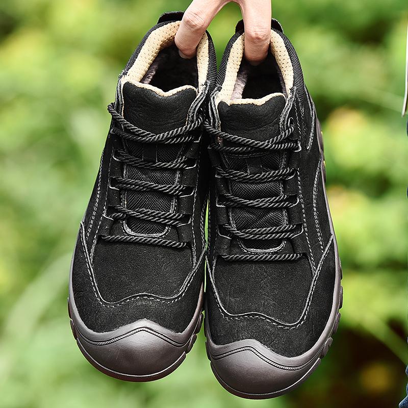 Genuine Leather Mens Ankle Boots Autumn Winter High Top Shoes Non Slip Walking Shoes Lace Up Male Snow Motorcycle Boots Sneakers