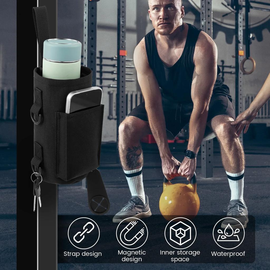 Magnetic Water Bottle Holder Portable Magnetic Gym Water Bottle Carrier Bag with Phone Pocket Towel Buckle for Men Women Gym
