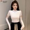 Women's Slim-Fit Hollow Knit Turtleneck Long Sleeve Top