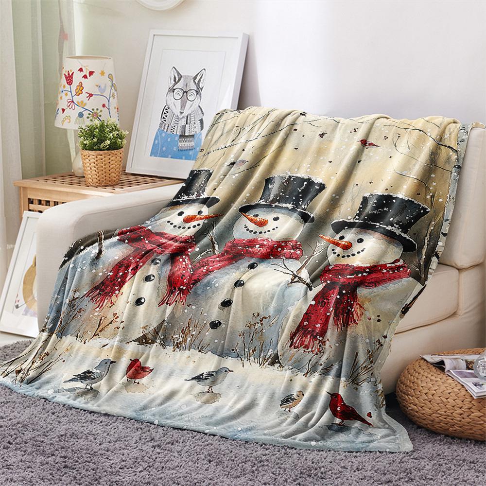 Snowmen Print Flannel Blanket, High Quality Comfortable for All Seasons, Home Decor, Warmth and Comfort, Perfect for Christmas Gifts