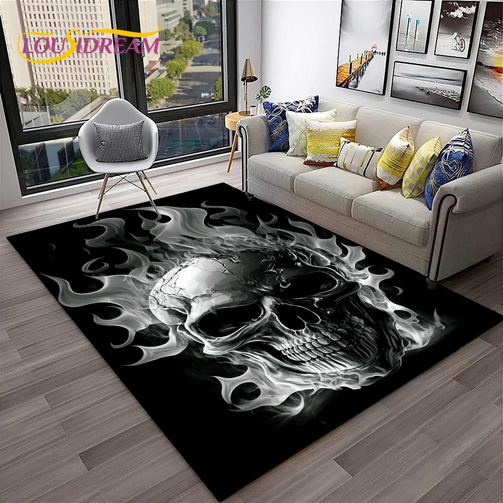 3D Gothic Horror Skull Carpet Rug for Home Living Room Bedroom Sofa Playroom Doormat Decor,Kid Game Area Rug Non-slip Floor Mat