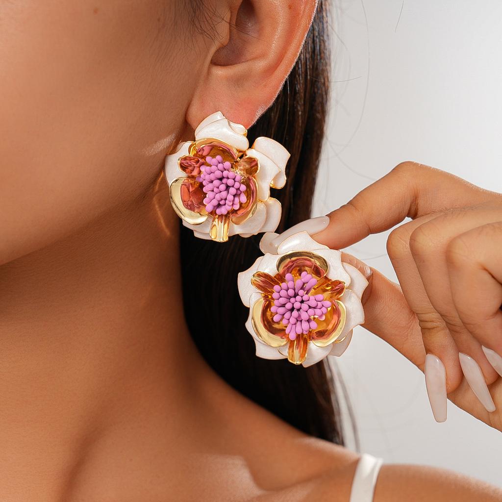 Dripping Flower Color Steel Needle Earrings Holiday Style Personality Fashion Earrings Sense Earrings