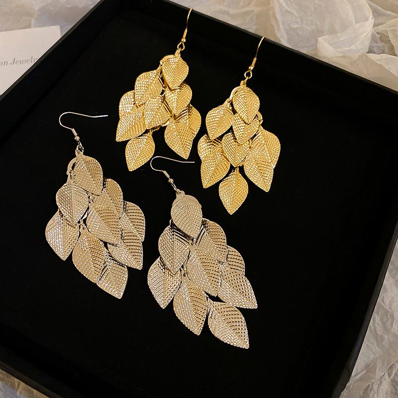 Metallic Texture Leaf Sequins Fringed Ear Hook Earrings Personality Temperament Earrings