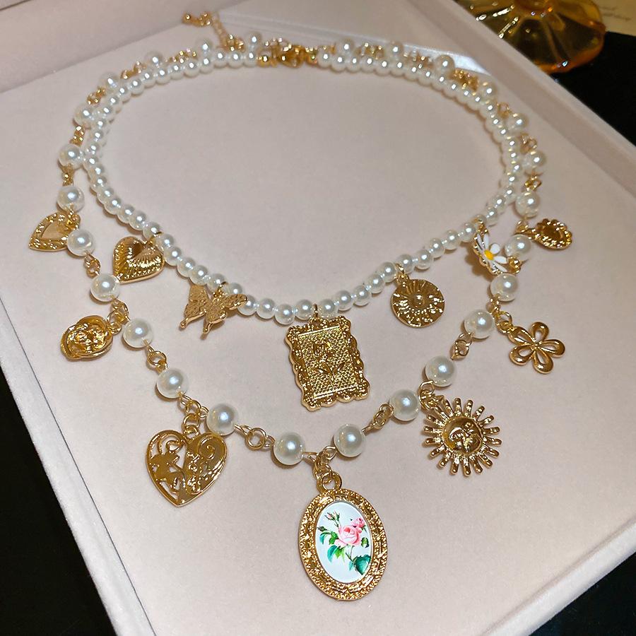 2-Piece Imitation Pearl Flower Love Butterfly Sun Geometric Necklace Temperament Item Decoration