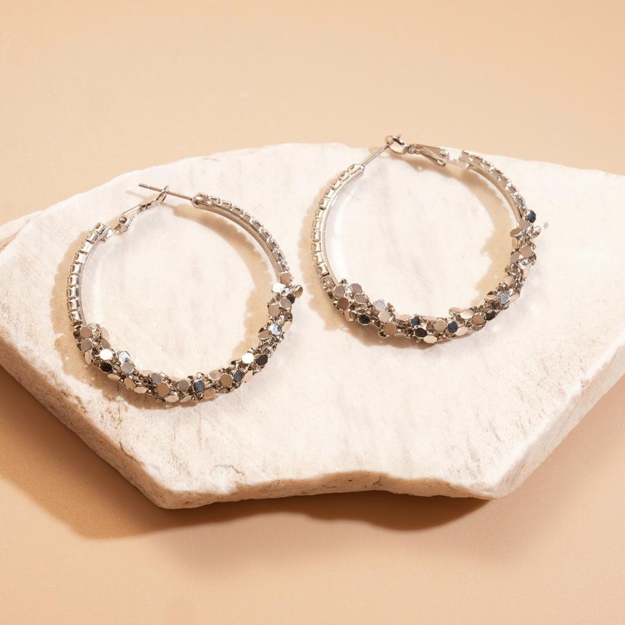 Silver Needle Diamond Geometric Round Earrings Personality Fashion Temperament Earrings Earrings