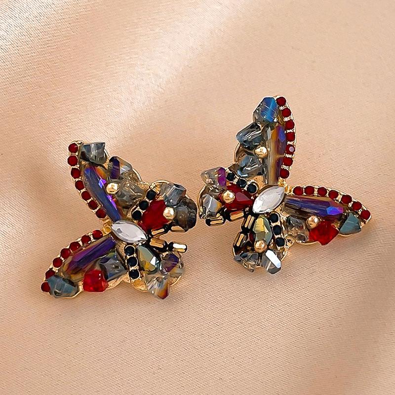 Silver Needle Retro Artificial Crystal Diamond Butterfly Stud Earrings French Court Style Personalized Earrings