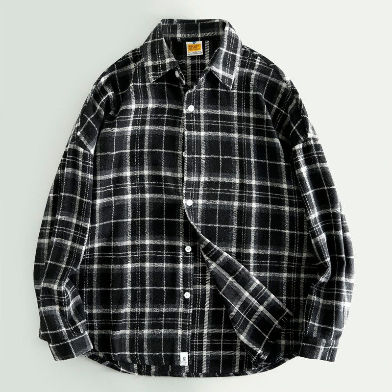 Plus-Size ~ Export Laomei Loose Plus Size Gingham Long-Sleeved Thickened Shirt Coat Plus and Extra Size Men's Shirt Fashion