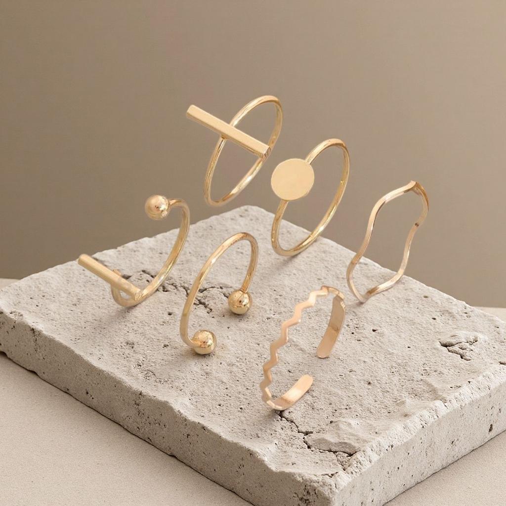 Temperament Design Wave Pattern Versatile Xianfan Exquisite Ring Set Accessories