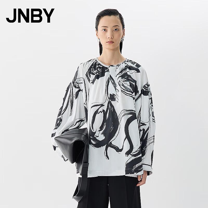 JNBY Women's Loose Fit Round Neck Tulip Print Long Sleeve Shirt