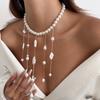 Salircon Sexy 3Styles Imitation Pearl Tassel Open Torques Choker Necklace Women Trendy CCB Bead Clavicle Neck Party Jewelry