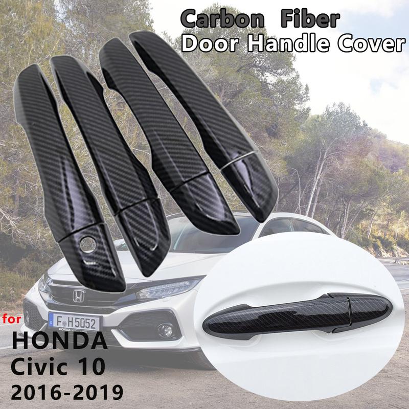 For Honda Civic 10 2016 2017 2018 4 PCS Exterior Carbon Fiber Door Handle Cover Catch Trim Car Cap Styling Accessories