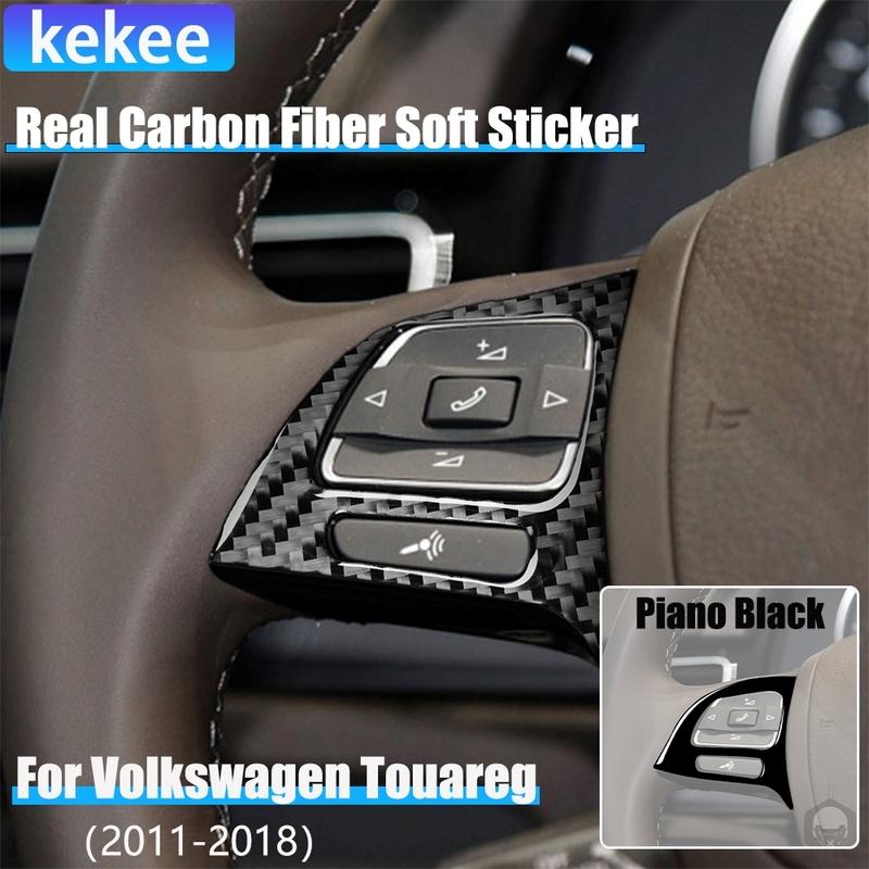 Carbon Fiber Car Accessories Driver Wheel Button Cover Sticker For VW Touareg 7P MK2 2011 2012 2013 2014 2015 2016 2017 2018