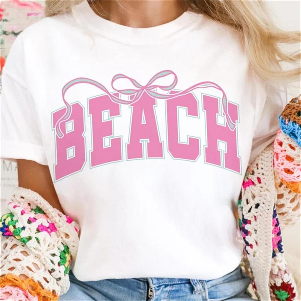 Beach Women's T-Shirt Cute Top Lady Casual Fashionable Women's Clothing Summer Trendy Fashion Short Sleeved Round Neck T-Shirt