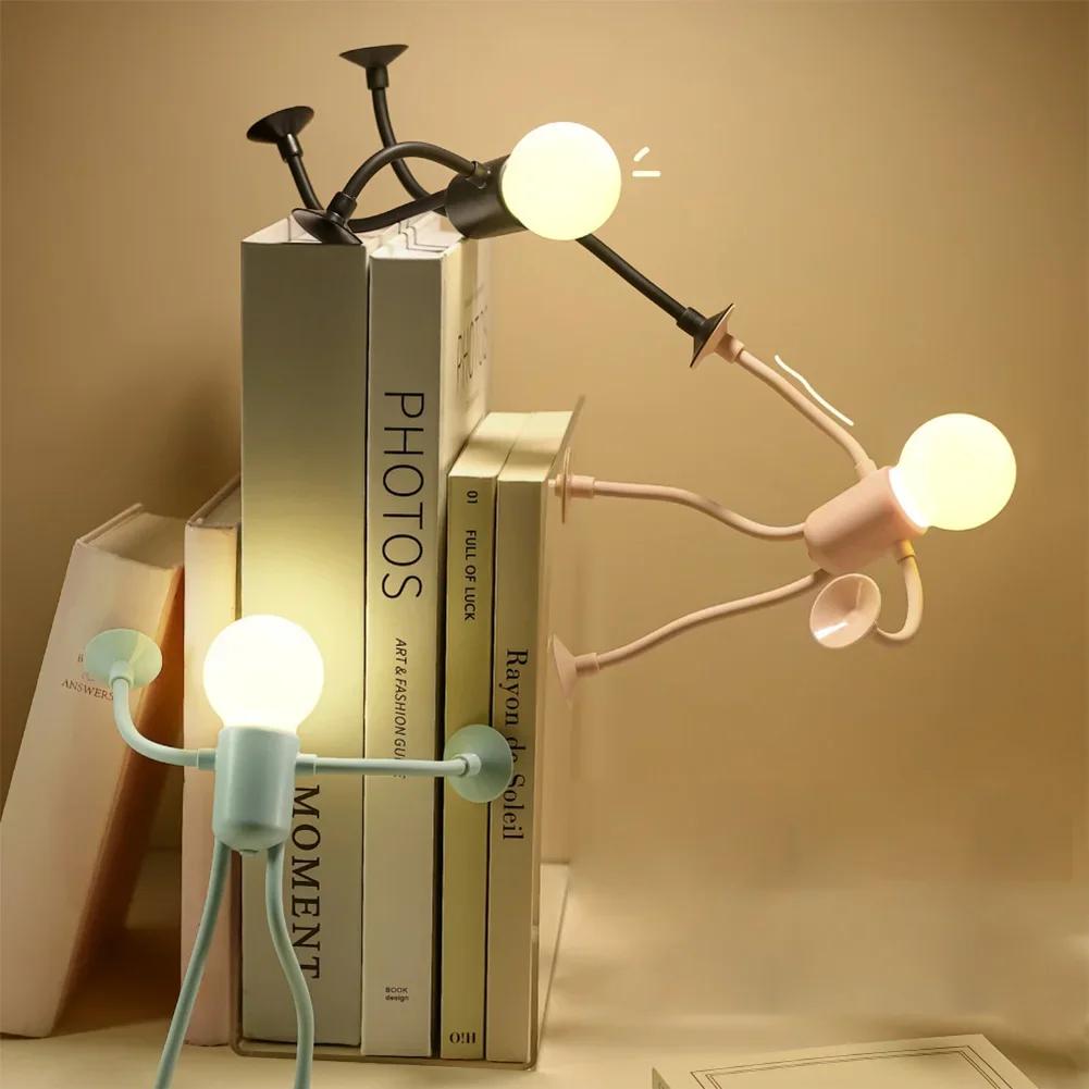 Cute Creative Cartoon Sportsman Night Light Mini Portable Bulb Suction Cup Lights Bendable Desk Lamp for Tabletop Shelves Decor