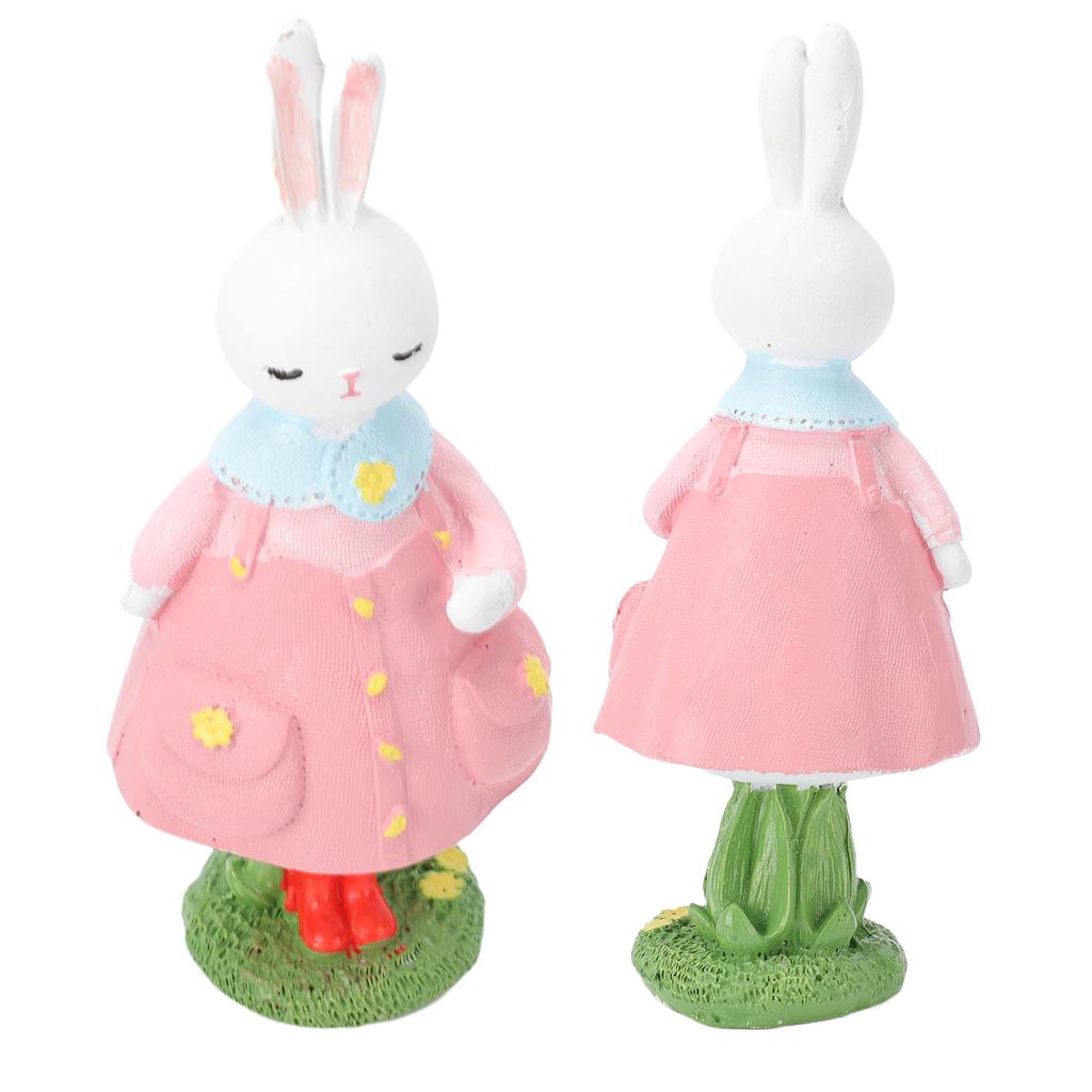 Cute Girl Bunny Resin Figurine Table Statue Decoration Easter Bunny Sculpture Statue for Living Room Bedroom Garden Pink