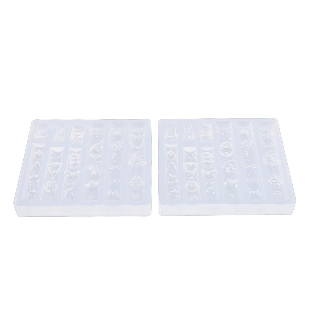 2 Pcs Xmas 3D Nail Mold Reusable Cute Silicone Nail Mold Xmas Tree Snowflake Carving Template
