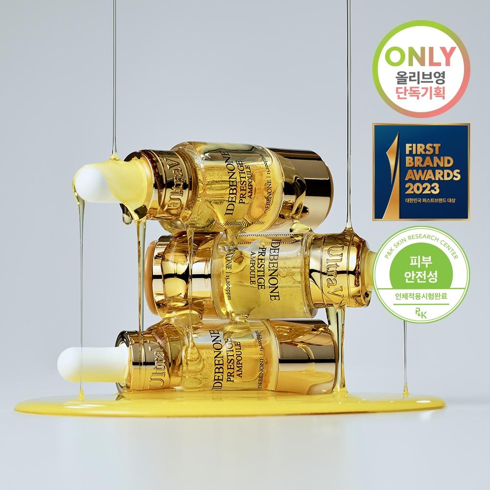 Ultra V Idebenone Prestige Ampoule 3pcs is an anti-aging skincare product that improves wrinkles and skin elasticity. This ampoule contains high concentrations of idebenone, which boasts an antioxidant effect equivalent to four times that of vitamin C and ten times that of coenzyme Q10. Suitable for all skin types, this product promotes healthy skin transformation with quick absorption and a non-sticky texture.