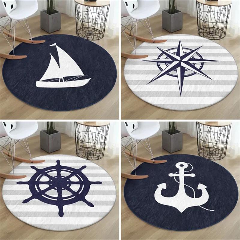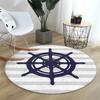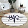 Marine Round Rug Compass Floor Carpet Wheel Non Slip Circle Rugs Sailor Anti Slip Mat Anchor Area Rugs Blue Rug for Living Room