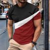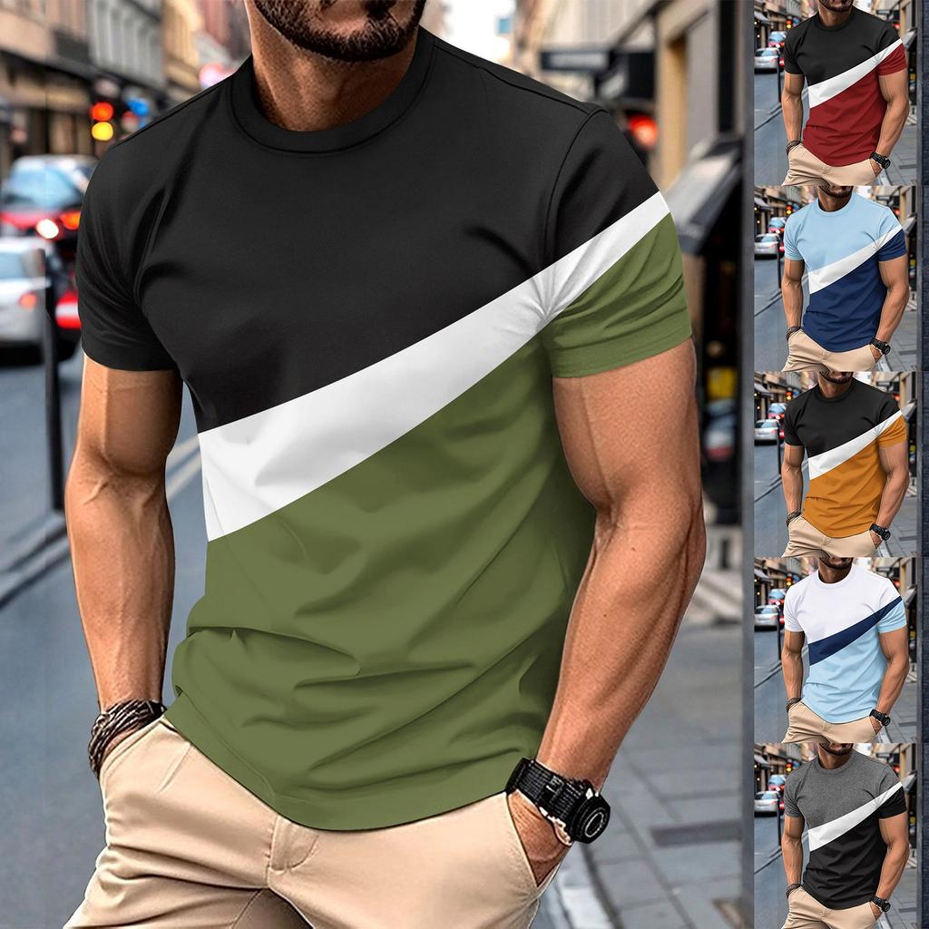 Men's Summer Casual Round Neck Short Sleeve Color Matching Pullover T-shirt Top