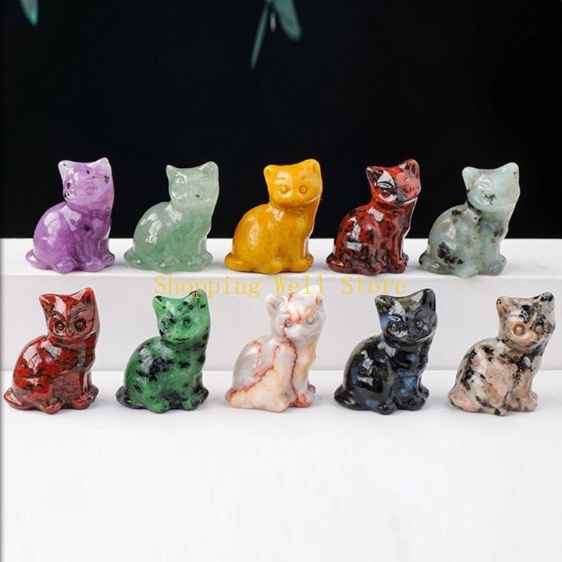KX4B Crystal Lucky Cats Miniature Figurine Collectibe Gift for Celebration Birthday Housewarmings Fengshui Decors Ornament