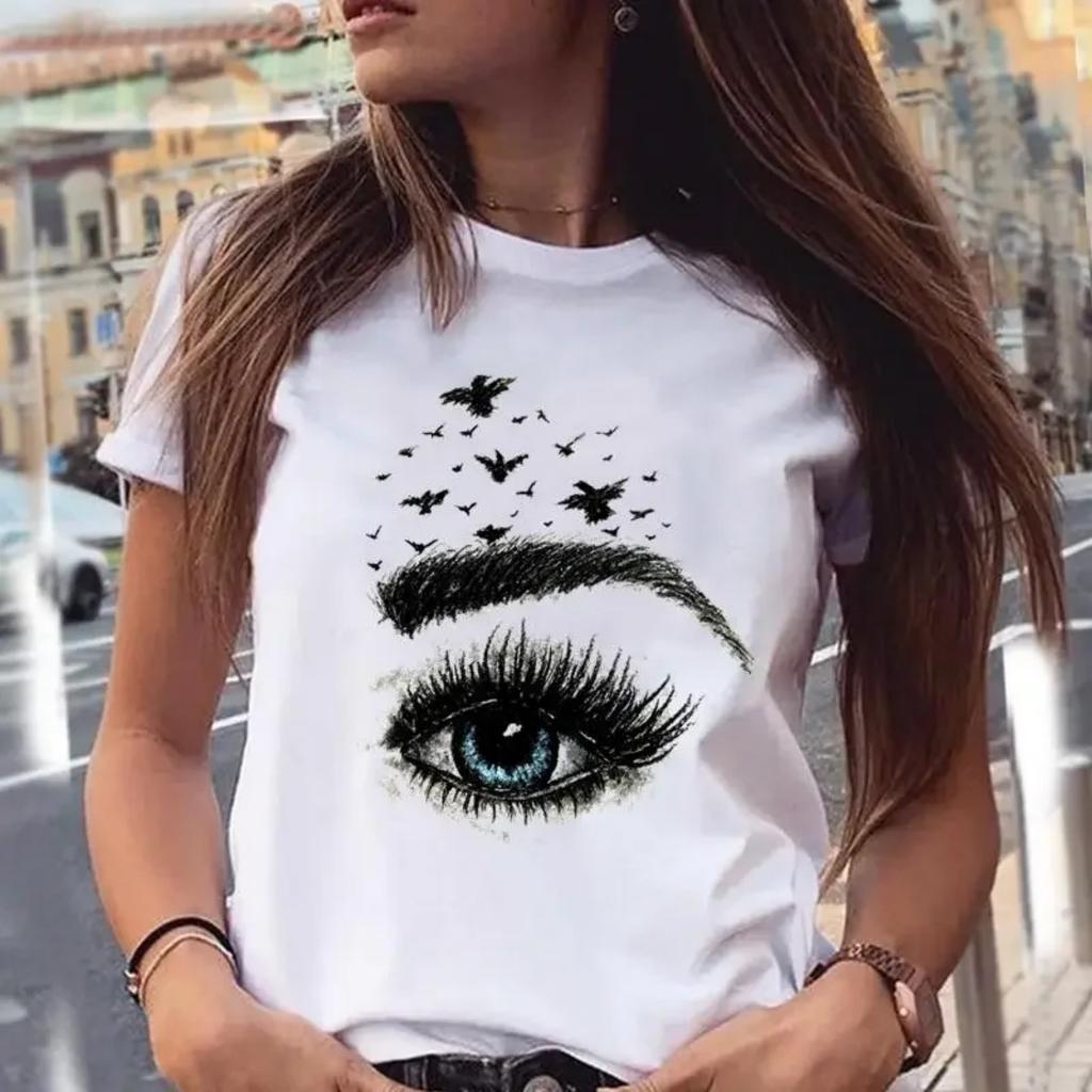 Women Watercolor New Cute Graphic Make Up Eyelash Cartoon Summer Female Clothes Fashion Print Tops Tees Tshirt T-Shirt