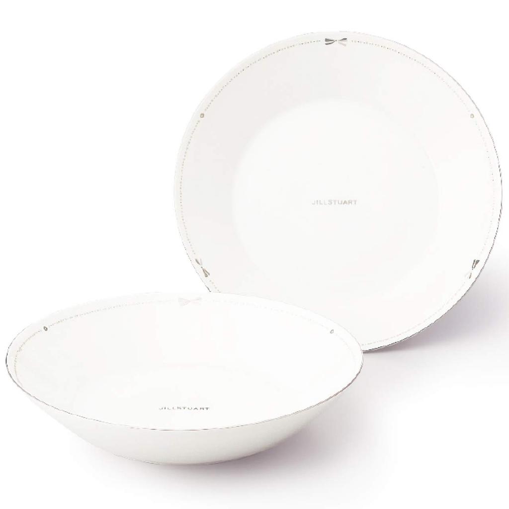 JILL STUART Plate Set, 22cm, White, Ribbon Pattern, Stylish and Cute Deep Plate, Made In Japan, Gift Boxed, 41635-33355