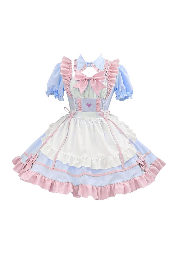OMZIN Maid Costume, Plus Size, Sexy, Cute, Maid Costume for Men and Women, Short Length, Cute, Maid Cafe, Coffee Shop, Cosplay Costume, Blue Pink, Siz