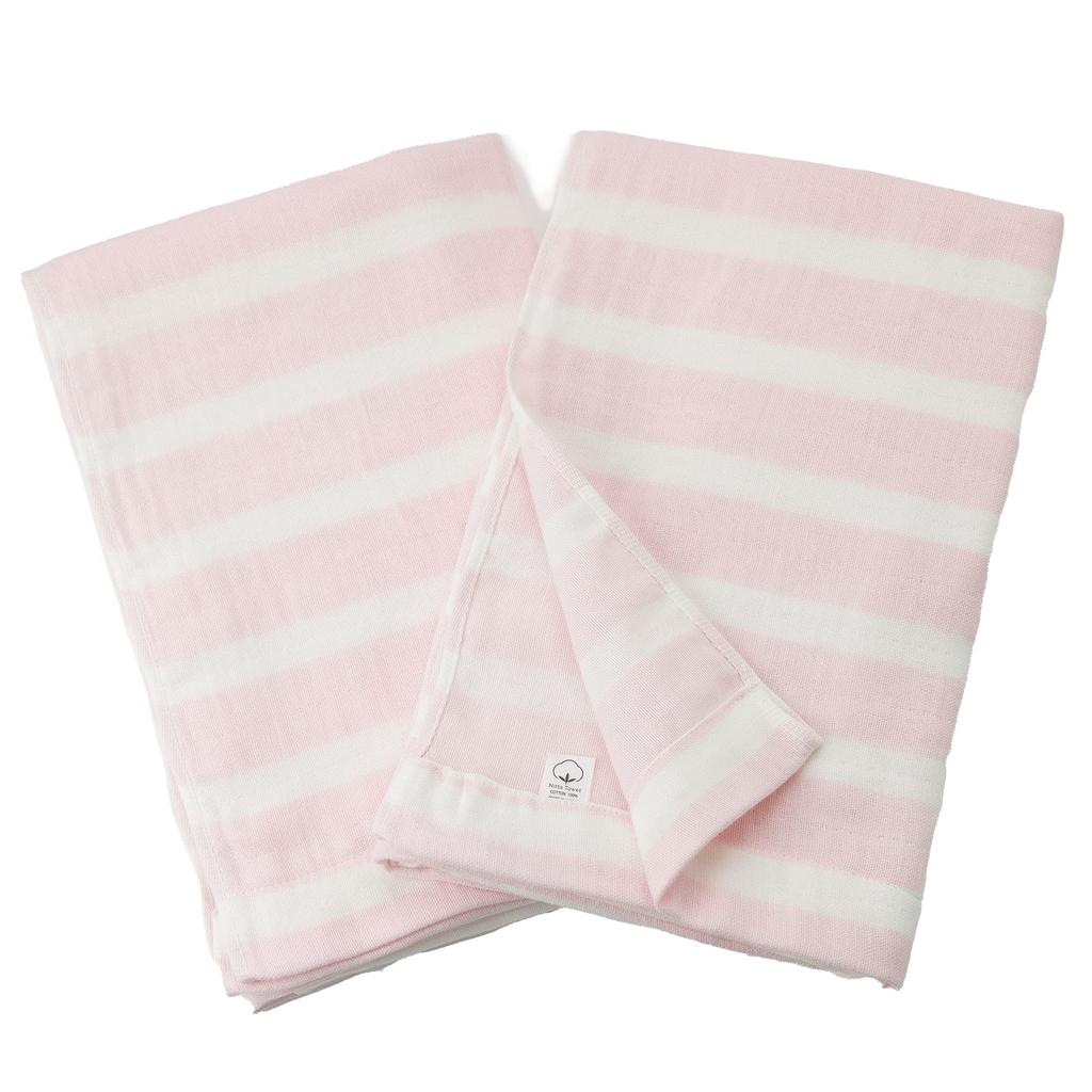 Mukotowel Double-Ply Gauze Border Bath Towels, Senshu Towels, Thin, Made In Japan, Quick-Drying, Set of 2, Pale Pink