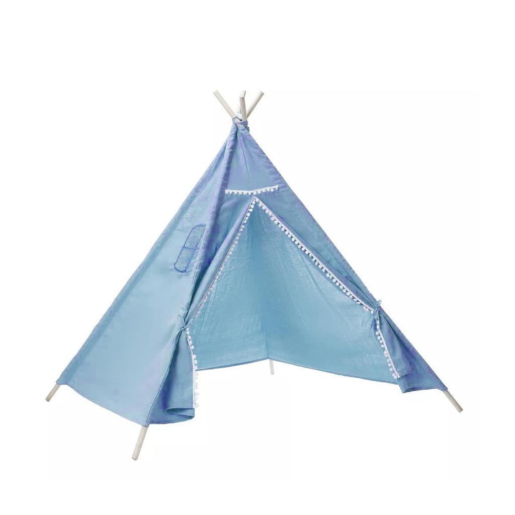 This kids' tent is an indoor teepee tent. It's perfect for glamping or camping in your room or living room! Place toys and stuffed animals inside to create a secret hideout, playroom, or even a place for naps. Made of cotton, it features pom-poms and five Nordic-inspired colors.