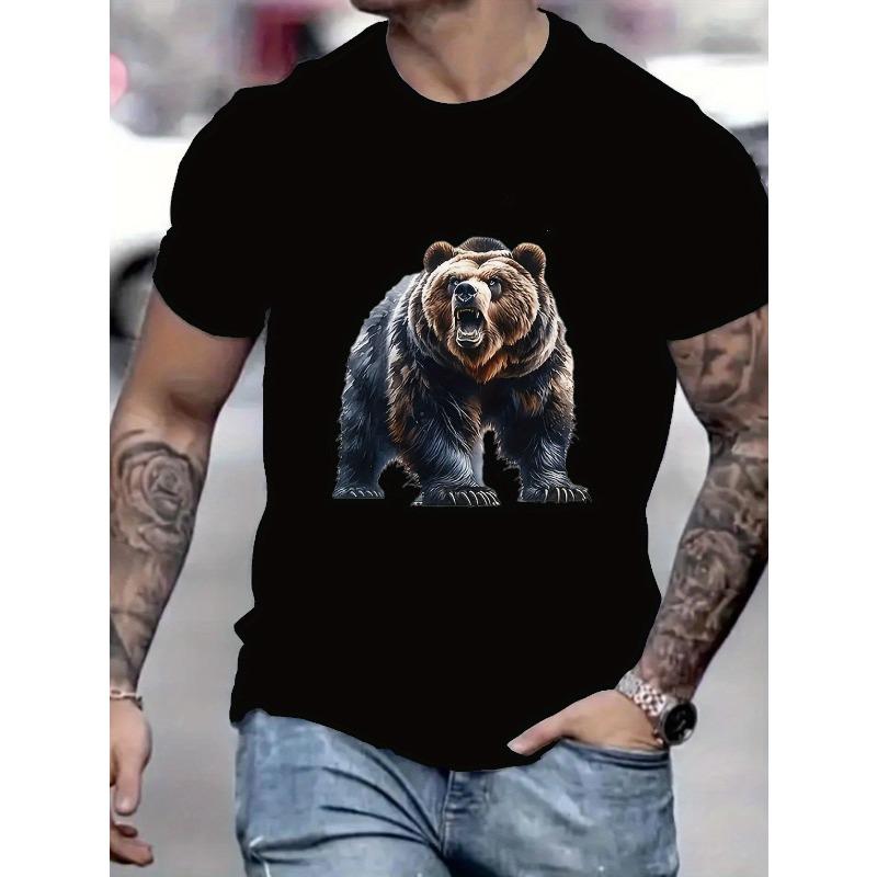 European Sizes Man'S Summer New Arrival T-shirt, with A Roaring Brown Bear Pattern Printed, Wild Animal Elements Lovers, Round Neck, Hot Selling