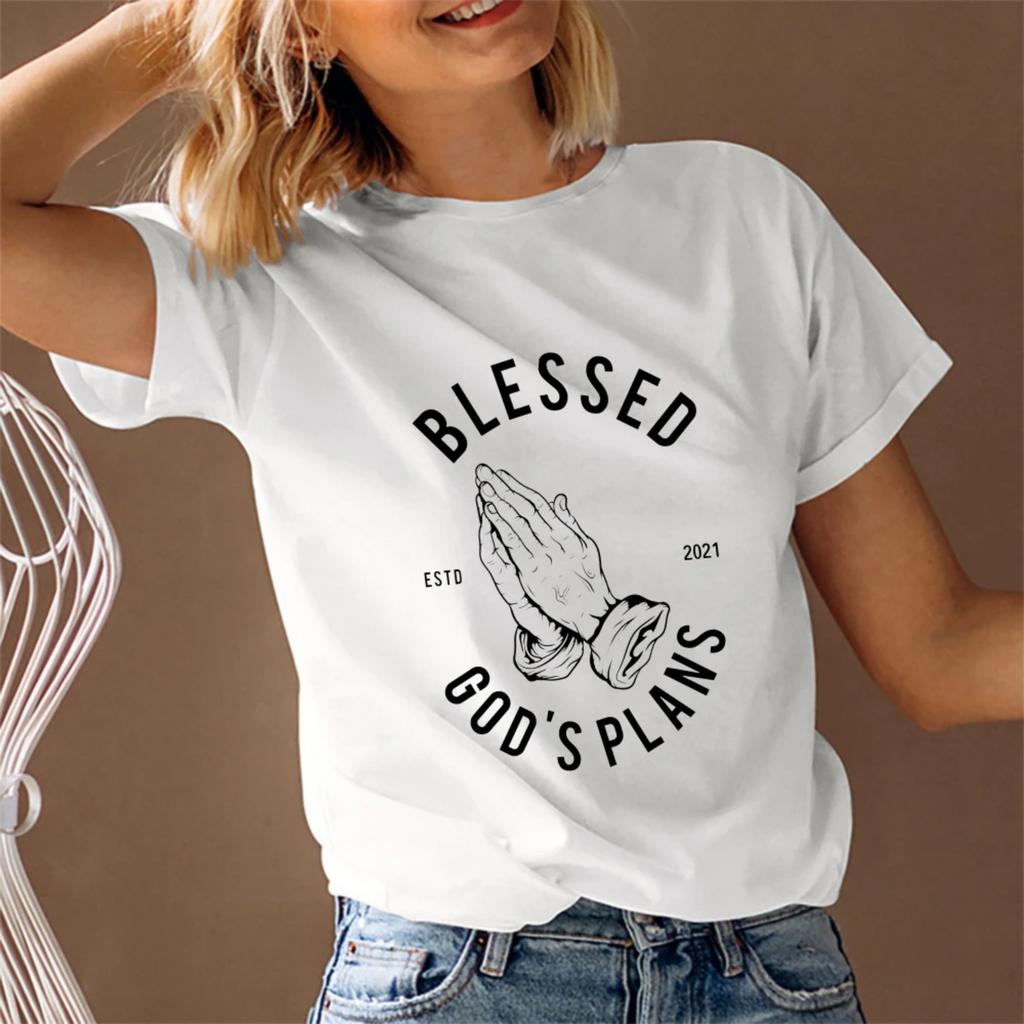 Women's T-Shirt Short Sleeve Round Neck Blessed God's Plans Graphic Tee Trendy 2023 Fast Ship