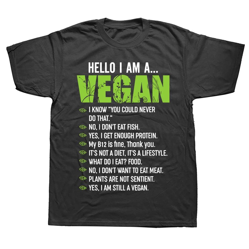 Funny Sarcastic Vegetarian Gift Hello Im A Vegan T Shirts Graphic Cotton Streetwear Short Sleeve Birthday Tshirt Mens Clothing