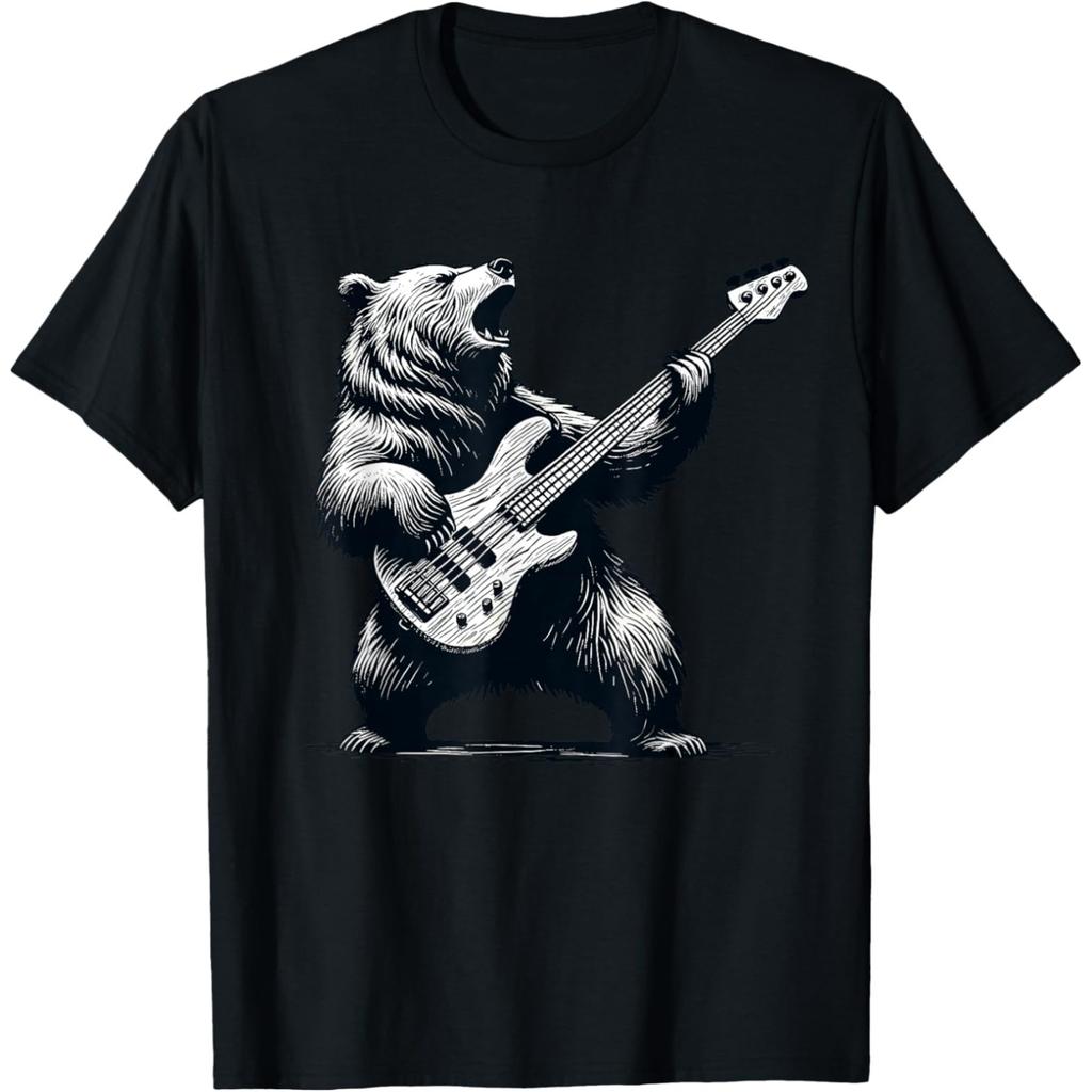 Rocking Bear Bass Guitar Player Music Cool Bassist Musicians T Shirts Christmas Guitar Humor Tee Short Sleeve Loose Clothing