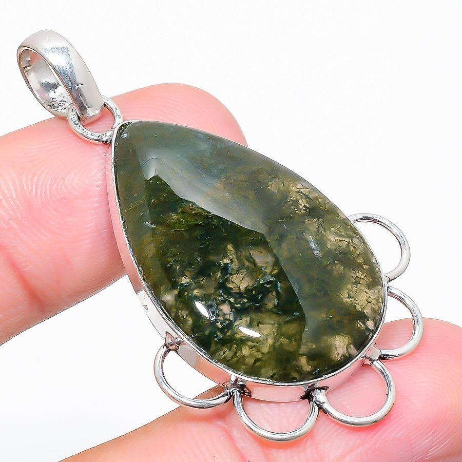 Title:- Indian Moss Agate Gemstone 925 Silver Jewelry Pendant 2.01"