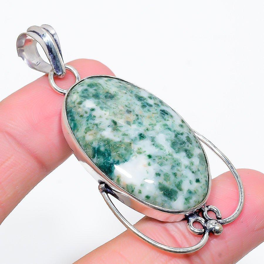 Title:- Tree Agate Gemstone 925 Silver Jewelry Pendant 2.40"