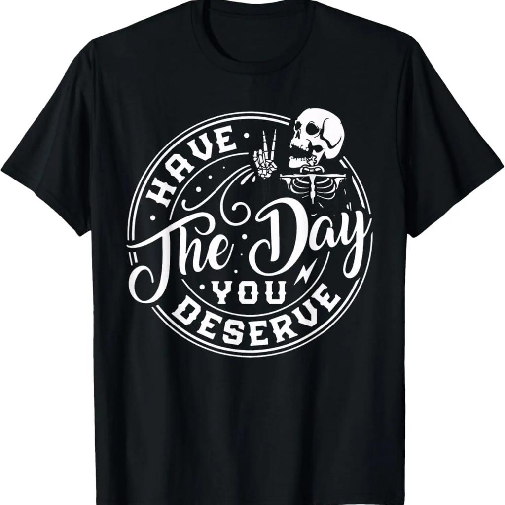 Have The Day You Deserve Skull For Womens Motivational Quote T-Shirt