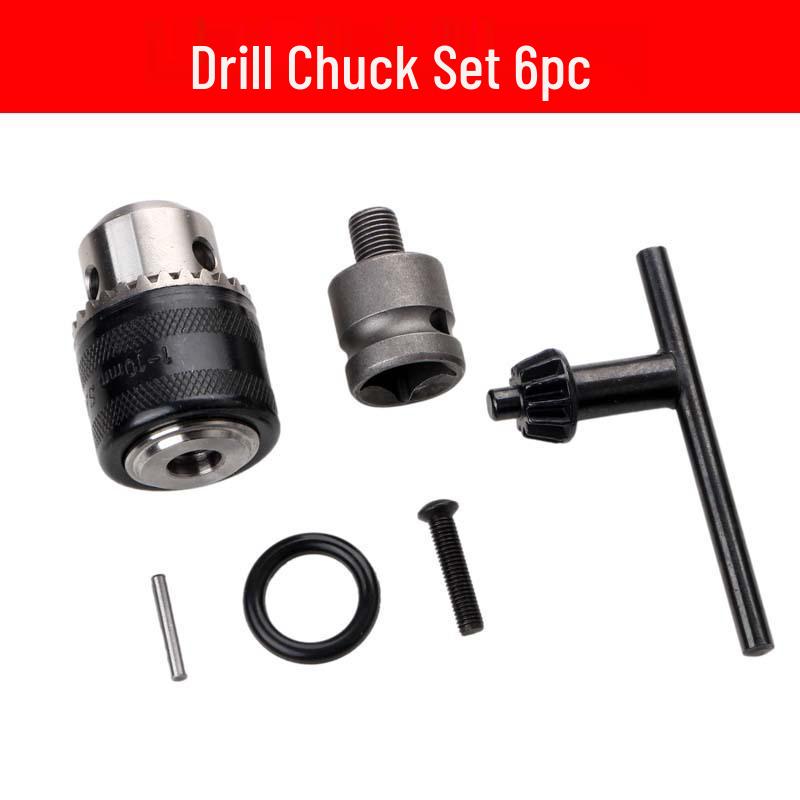 5-Piece Drill Chuck Set with Square/Round Shank, Hammer Impact Extension Rod, Power Tool Accessories, and 6-Head Wrench Conversion.