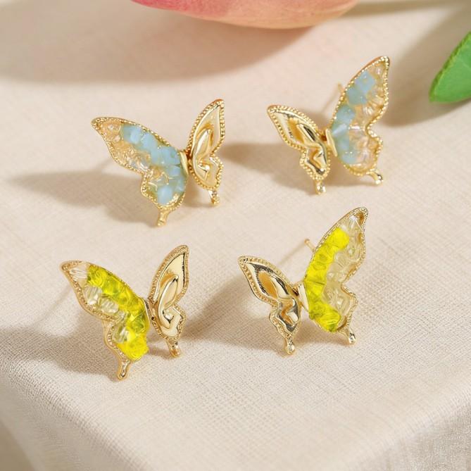 Spring Cream Butterfly Stud Earrings Premium Gilt Diamond Earrings Fairy Earrings