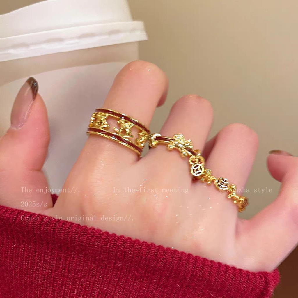 Get Rich Now! Birthday Gold Pony Ring Stacked Index Finger Ring Open Ring