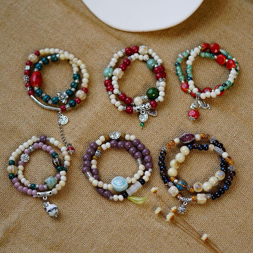 New Chinese Double-circle Ceramic Bracelet Jewelry Wholesale Ethnic Style Literary Bracelet Accessories Strictly Selected Yiwu Small Commodities