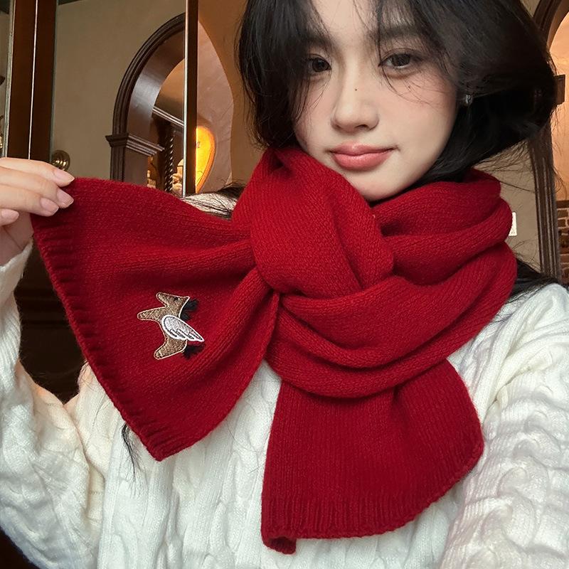 New Year's Anchor Red Woolen Scarf Women's Autumn and Winter High Quality Thick Warm Knitted Scarf Christmas Gift