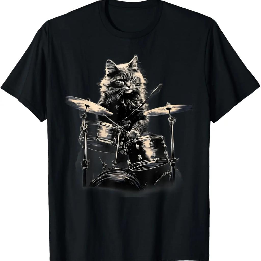 Cat Playing Drums I Cat Music T-Shirt (2)