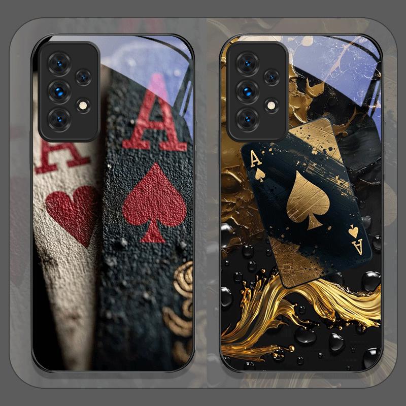 Creative The Ace of Spades Pattern Tempered Glass Phone Case for Samsung Galaxy A56 A72 A55 A54 A53 A52 A36 A15 A14 A13 5G Cover