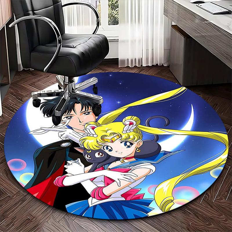 1pc Sailor Moon Anime Cartoon Design Round Carpet Office Chair Mat, NonSlip Rug for Home Decor, Living Room, Bedroom, Game Room