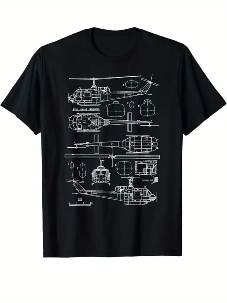 Mens AviationThemed Cotton TShirt with Cockpit Aircraft Instrument Panel Print Helicopter Airplane Schematics