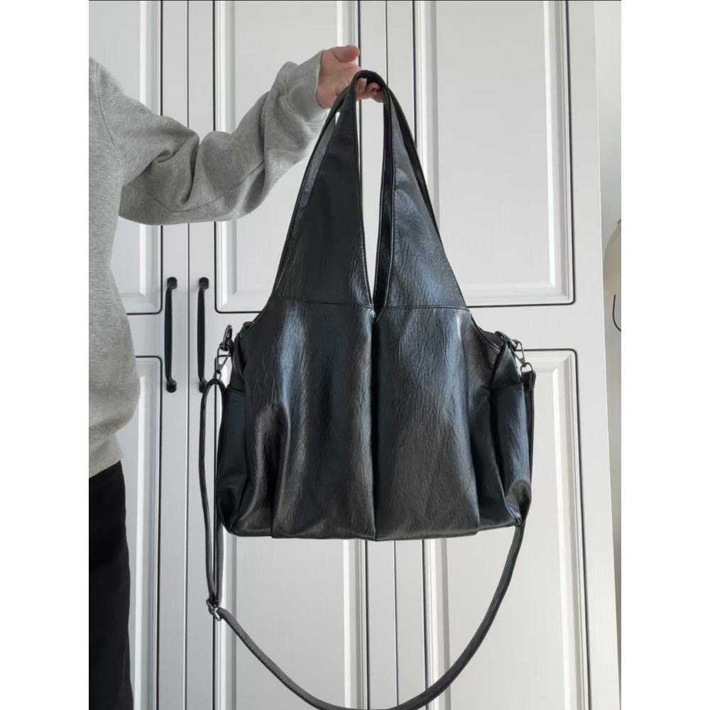Cross-border Large-capacity Bag 2025 New Shoulder Bag Soft-sided Casual Retro Black Tote Bag Messenger Bag Bag Women